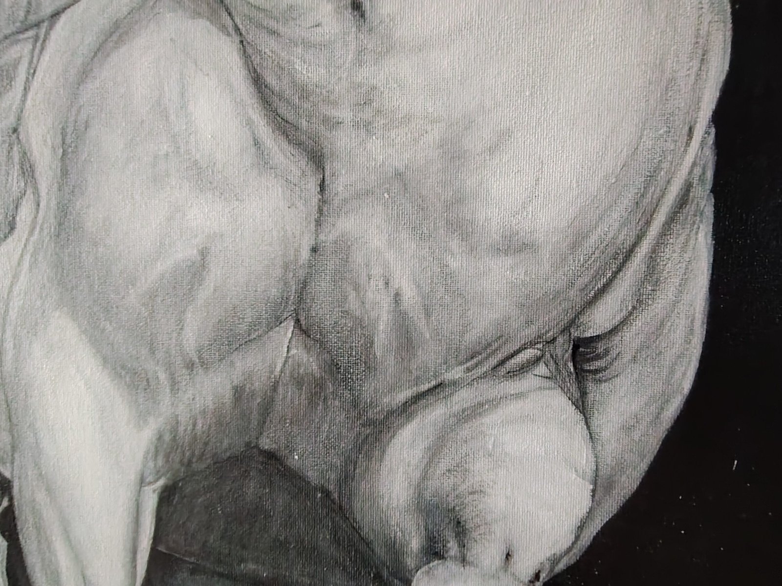 El tratamiento monocromo refuerza la presencia escultórica de la figura, que emerge del fondo a través de un gesto seguro y una construcción anatómica precisa. La economía cromática concentra la atención en la forma, el volumen y la energía interna del cuerpo, evitando cualquier elemento anecdótico o descriptivo.