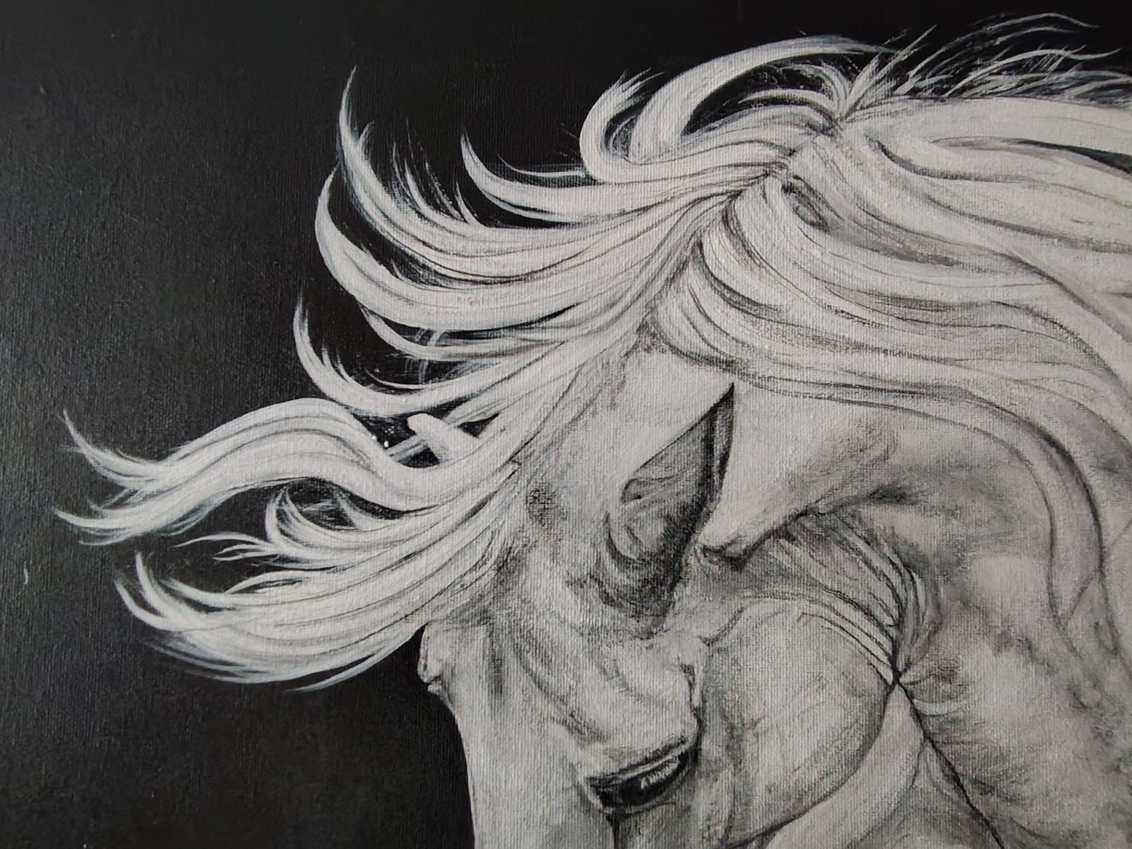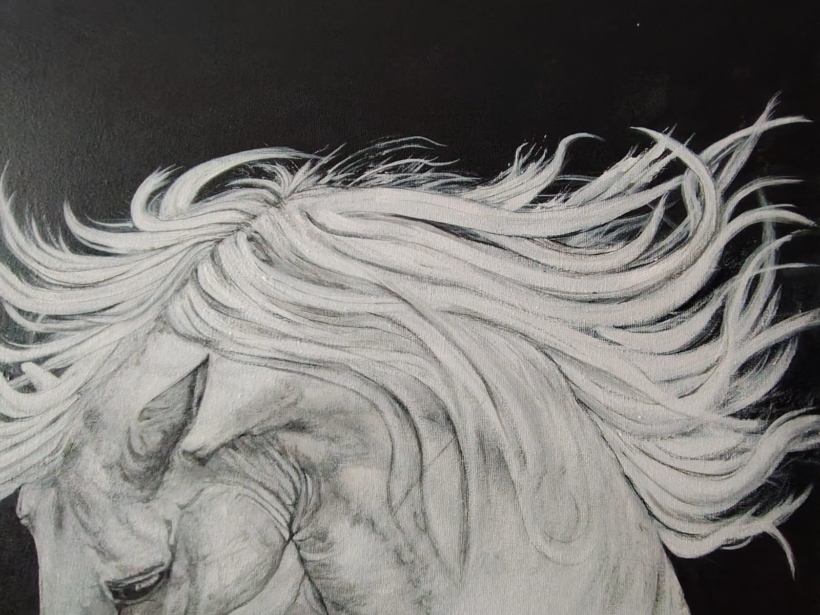 Caballo blanco es una pieza única, creada desde un proceso artístico consciente, pensada para dialogar con el espacio y convertirse en un punto de presencia y carácter. Su fuerza no reside en el dramatismo, sino en la claridad del gesto y en la solidez de su construcción visual.