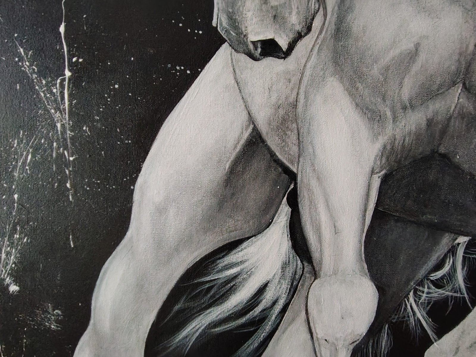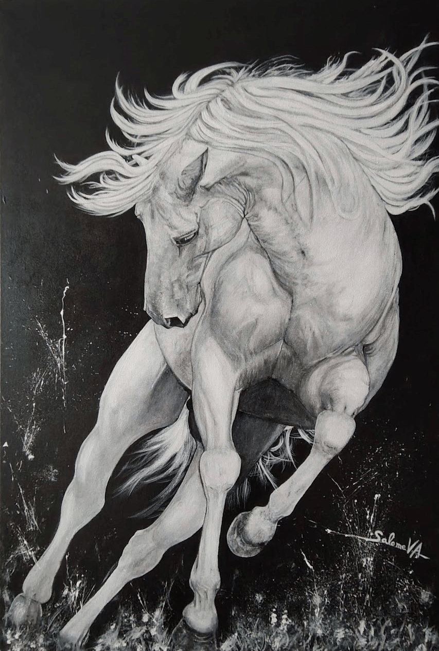 Caballo blanco es una obra original de arte contemporáneo que aborda la figura animal como símbolo de fuerza, movimiento y tensión contenida. La pintura se sitúa en un territorio intermedio entre la figuración y la abstracción, proponiendo una lectura emocional más que narrativa.
