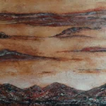 La paleta cromática —dominada por tonos tierra, ocres y matices oscuros— remite a la calidez del atardecer y a una conexión directa con lo natural. No hay dramatismo explícito, sino una presencia silenciosa y profunda, pensada para integrarse en espacios donde el arte acompaña y no impone.