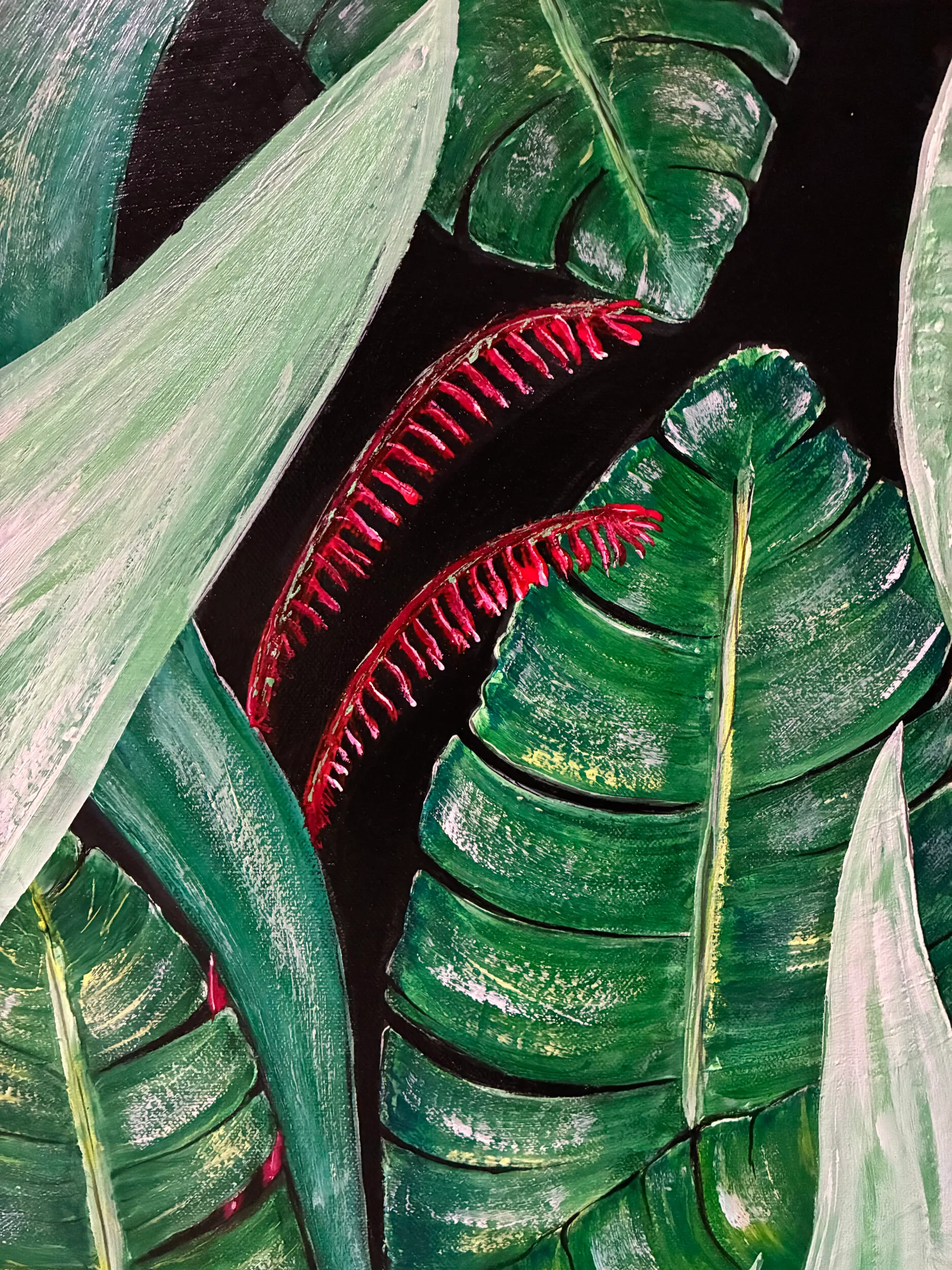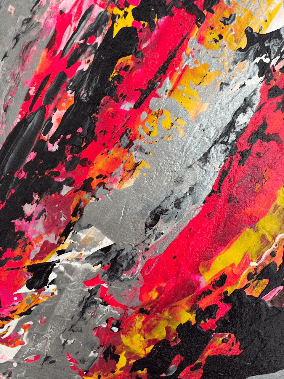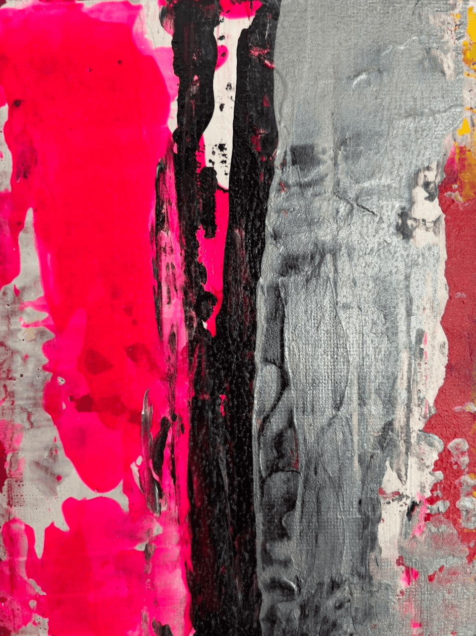 Cada obra ha sido realizada mediante superposición de capas y gesto dirigido, generando una progresión visual que evoluciona desde la contención hasta la expansión.