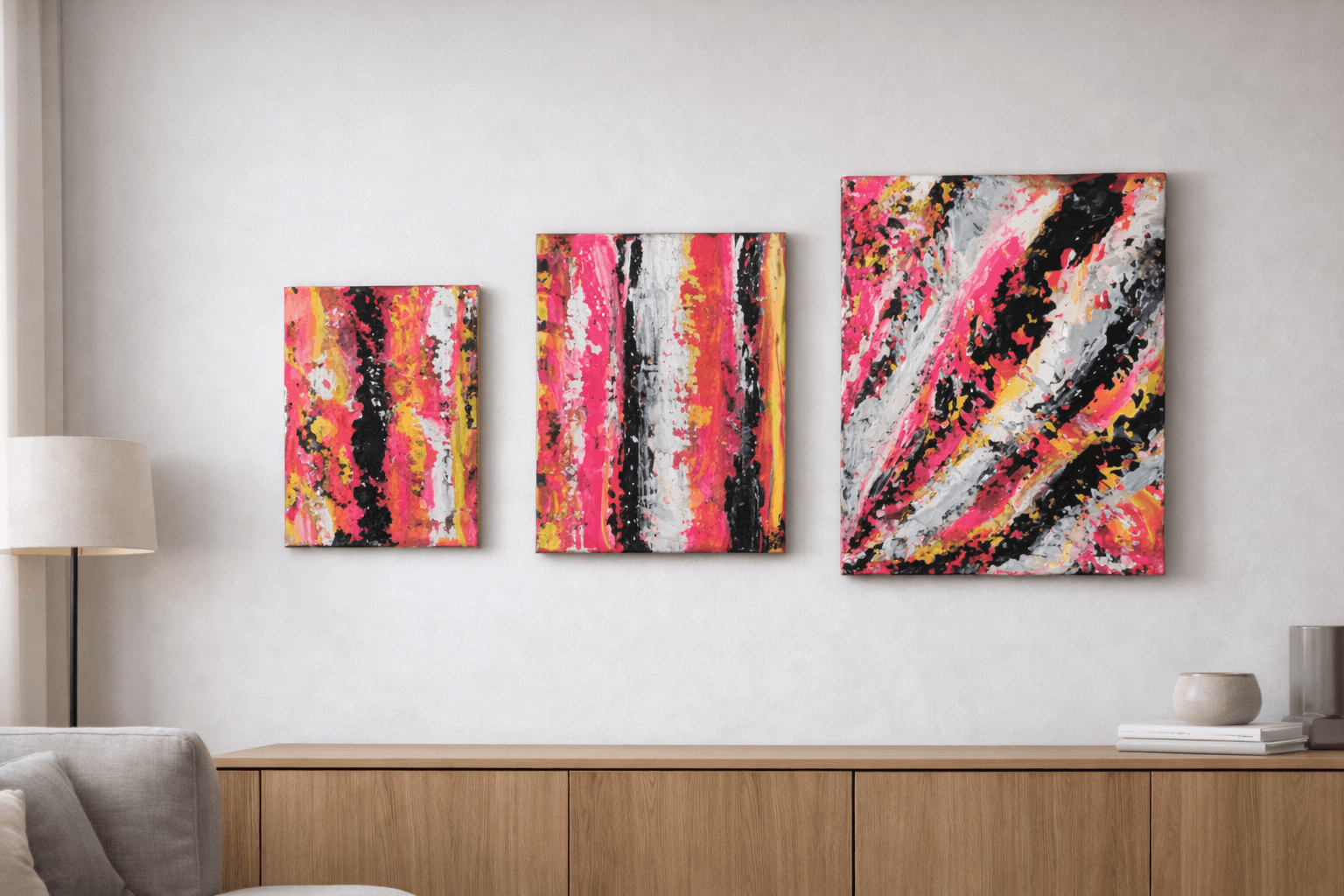 Colección compuesta por tres piezas originales en acrílico sobre lienzo: